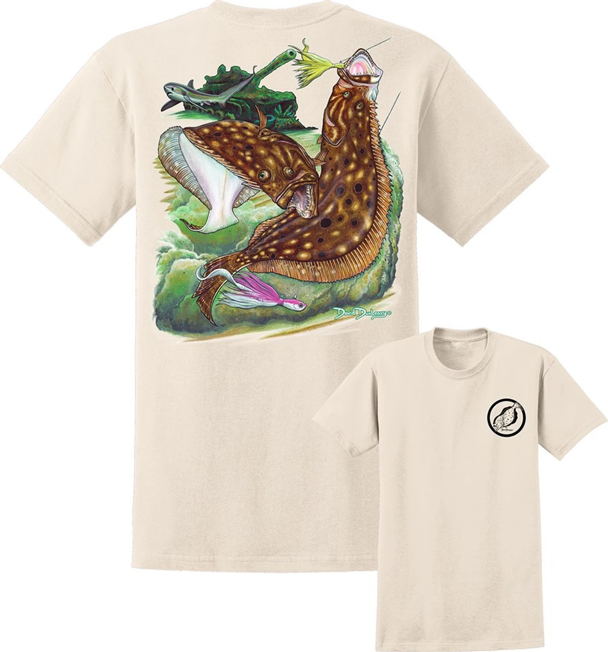 David Dunleavy DDM8052 Flounder Reef SS T-Shirts feature a David Dunleavy Flounder design on the back and front left chest.