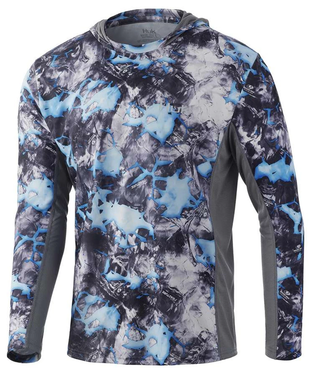 The Huk Icon X Mossy Oak Fracture Hoodie is designed to keep you comfortable by wicking moisture and its quick drying technology. The synthetic fibers contain hydrophobic coating to help to remove heat from your skin keeping you cooler throughout the day on the water. An ideal layer for the warm fishing seasons.