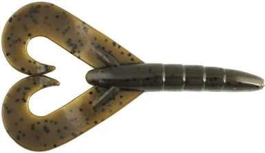 The versatile Missile Baits MBTT33-GP Twin Turbo, in Green Pumpkin color, features tapered twin tails with stiff-arms for support and fast-start tips so they will move naturally at any speed. The thinner and longer body shape, complete with Missile-grip ribs, facilitates Texas-rigging applications and allows for great hook ups. These features make the Missile Baits Twin Turbo perfect as a trailer for swim jigs, football jigs, spinnerbaits, and chatterbaits or on a Carolina or Texas rig.