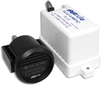 The High Water Bilge Alarm consists of a non-mercury float switch and an in-dash gauge that features both a visual and an audible 85 db alarm. This unit allows an unmanned com part ment to be constantly monitored. For additional compartments add additional Rule Float Switches. Complies with CFR 182.530 which requires a visual and audible alarm in each unmanned space on commercial vessels at least 26′ (7.9m) in length.