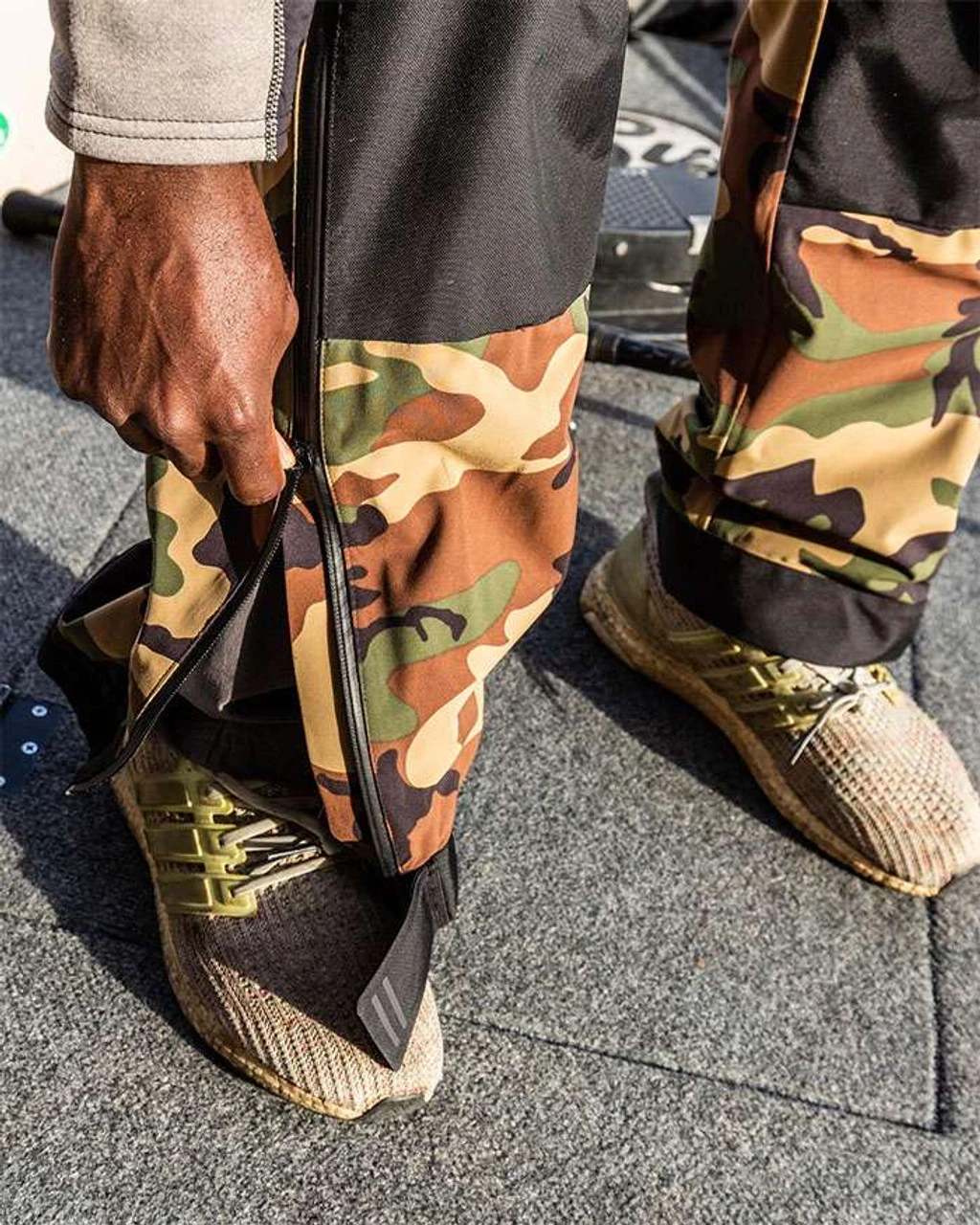- Zippered leg openings for easy on/off and can be cinched down with adjustable hook and loop hem.