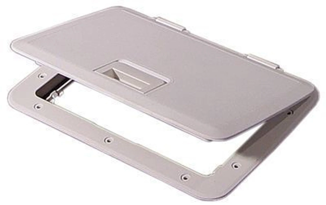 The Tempress Access Slam Hatches are constructed from a glass filled polypropylene, for strength and durability and are designed for heavy traffic areas. These hatches will withstand people walking or standing upon them. The Access Slam Hatch features an easy to close slam latch that forms a weather-tight seal just by closing the hatch. Access Hatches also utilize a patented integral hinge assembly that allows for easy lid removal. The beveled and skirted lid covers all fasteners for a clean look above or below decks. The Tempress Access Slam Hatch line is the perfect choice for easy dry storage, access to bait or fish wells, or electrical and plumbing lines.