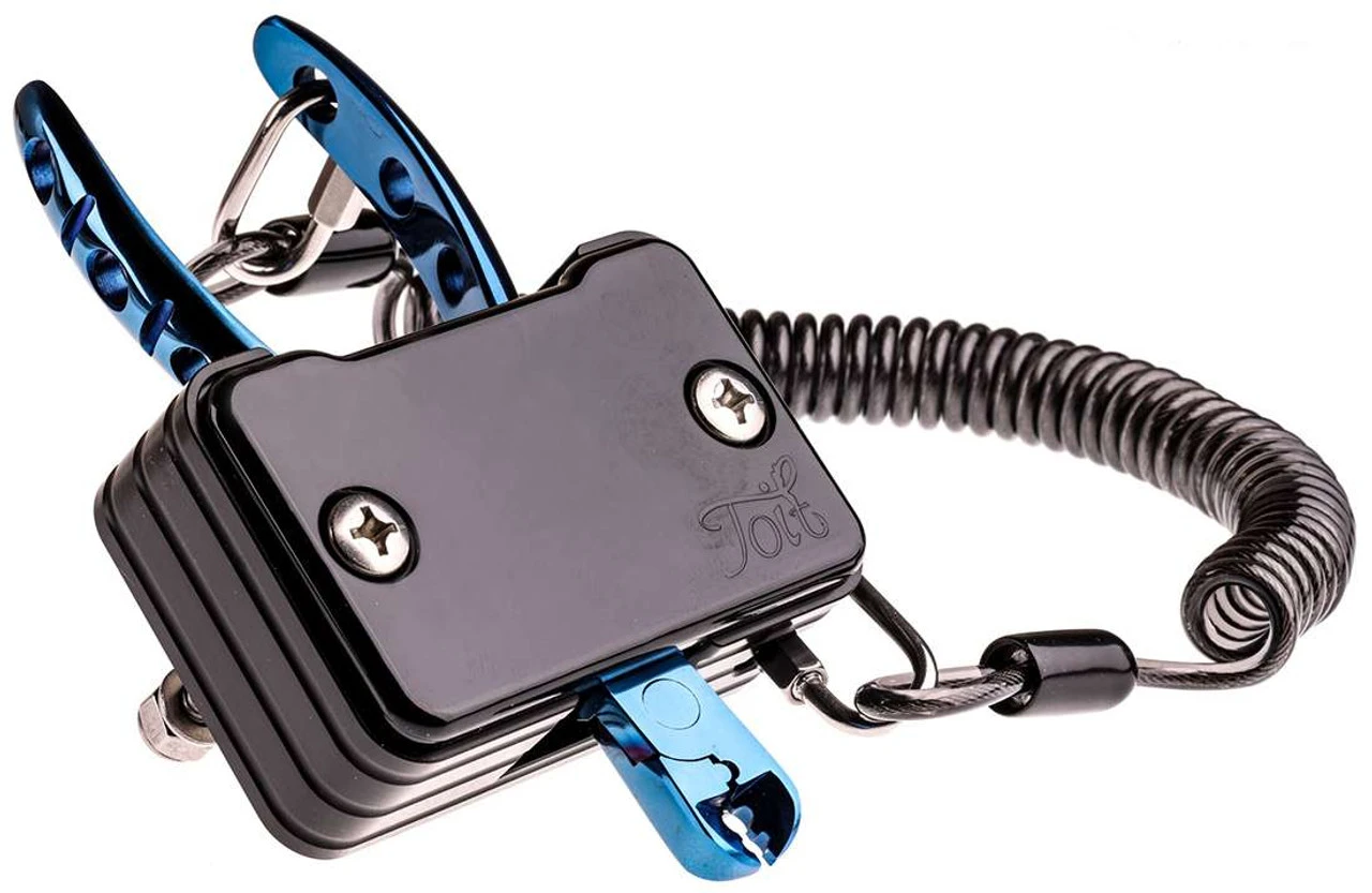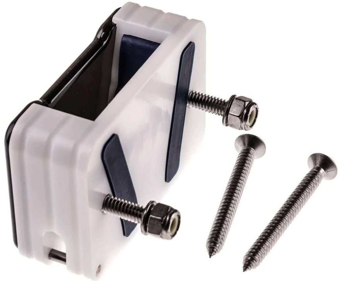 The Toit Pliers Holder is designed to fit all Toit Pliers and are available in either a white or black option. These pliers holders can be attached to a kayak, cooler box, boat, cleaning station, beach cart, rod spike, or just about anywhere else your heart desires. All the screws and bolts are A2 stainless steel. The holder comprises a clear black polycarbonate lid and two blue silicone inserts not only to protect the tools but add a positive grip to your pliers of choice while protecting the boat or item you are attaching it to. These are all joined together by the main body holder which is available in white or black POM material. There is also a stainless steel dowel attachment for a Toit Tool Tether, securing your tool in position.