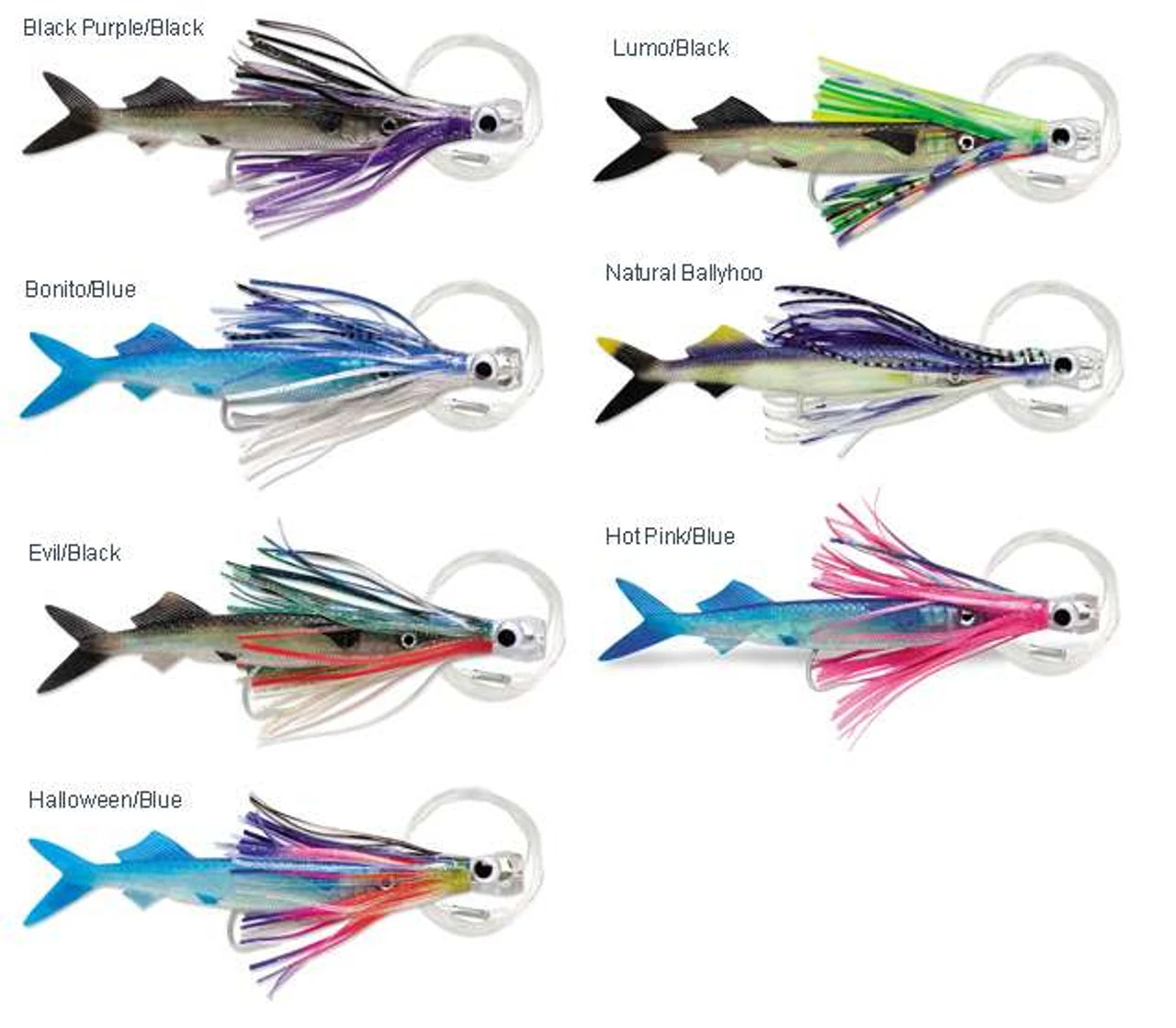 This classic setup comes pre-rigged and ready to add extra commotion to your spread. The scoop head Sailfish Catcher adds the attraction of smoke and bubble trail to the Live Ballyhoo, an irresistible combination for Dorado, Tuna, Yellowfin, Sailfish and smaller Billfish.